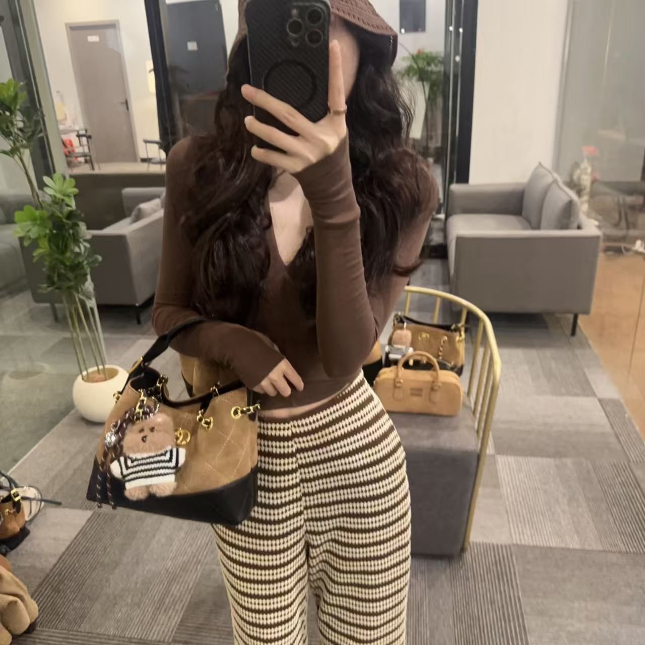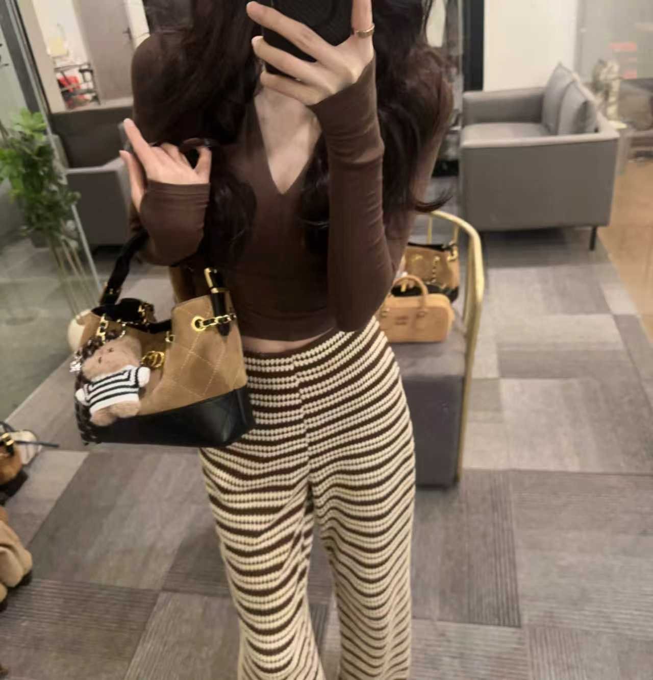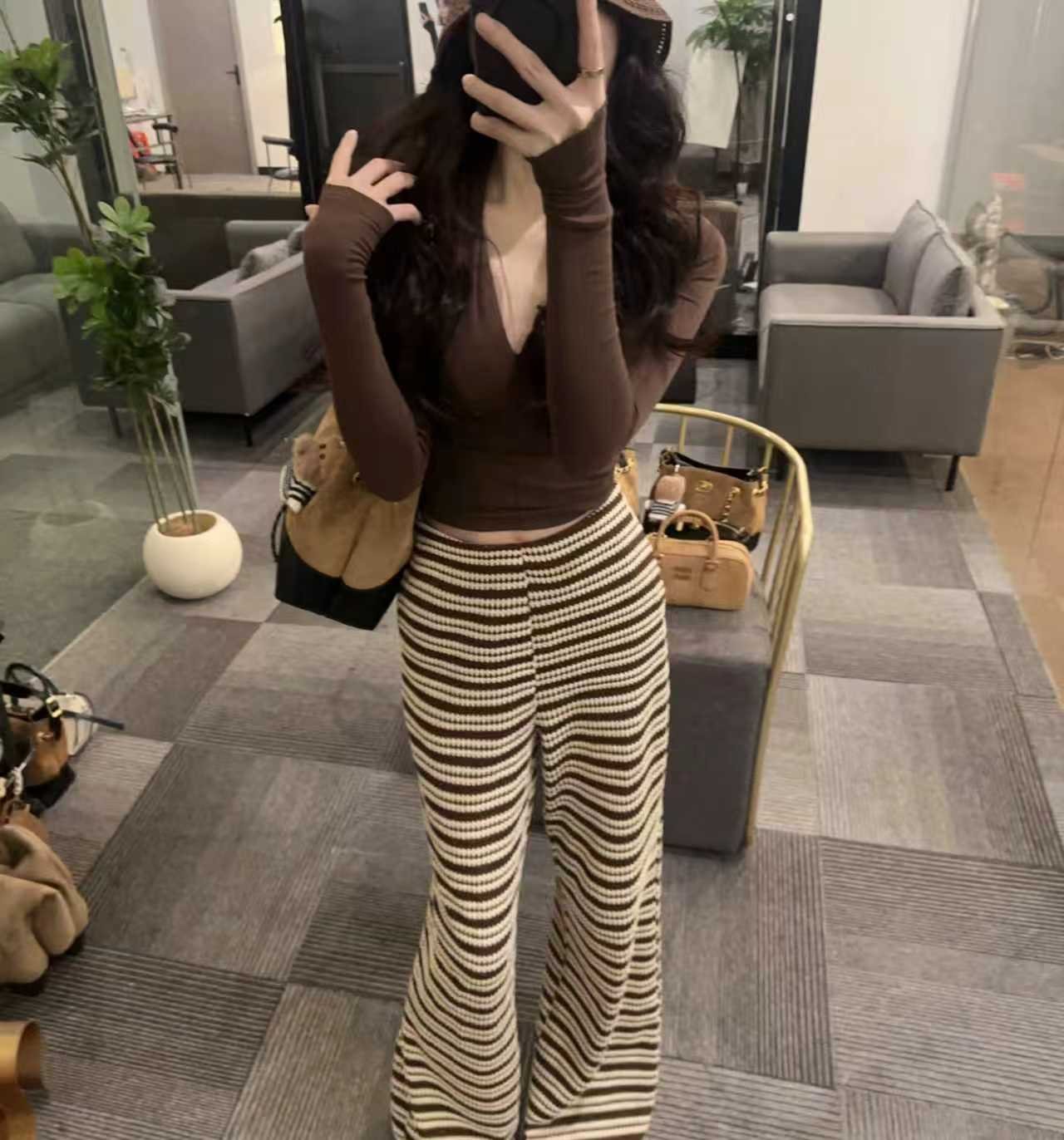 【osoneshow】new casual two piece set – long sleeve t shirt with coffee stripe loose straight leg pants【OSoneshow】New Casual Two-Piece Set – Long Sleeve T-Shirt with Coffee Stripe Loose Straight-Leg Pants 028