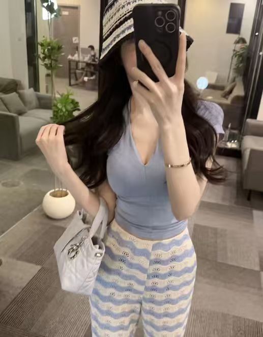 【os&oneshow】summer blue and white stripe two piece set – top with straight wide leg pants【OS&oneshow】Summer Blue and White Stripe Two-Piece Set – Top with Straight Wide-Leg Pants 018