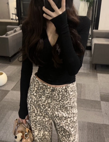 【os&oneshow 】2025 early autumn two piece set – black t shirt with high waist straight pants and leopard wide leg trousers【OS&oneshow 】2025 Early Autumn Two-Piece Set – Black T-Shirt with High-Waist Straight Pants and Leopard Wide-Leg Trousers 031